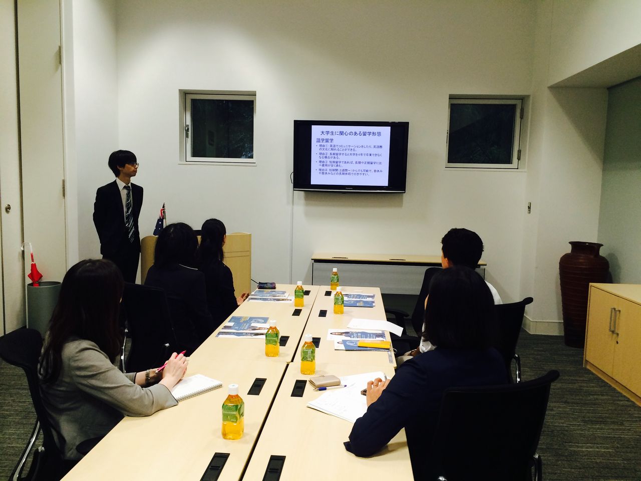 9月25日オ-ストラリア大使館にて、私共留学協会のインタ-シップに参加をして頂いた学生さんによる「最近の大学生が関心のある留学とその情報収集の方法」テ-マにプレゼンをさせて頂きました。