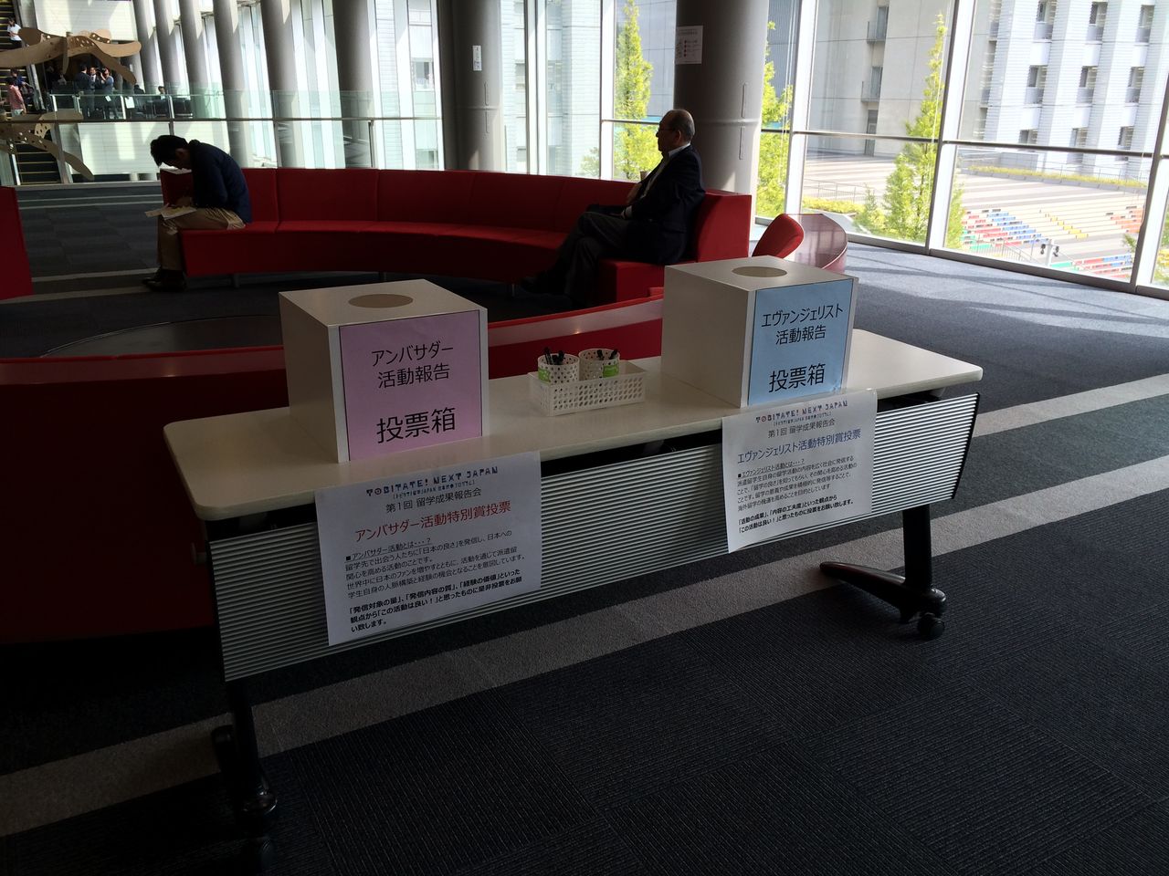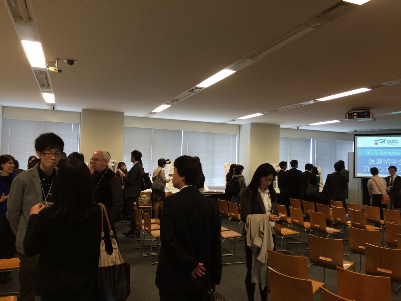 118名のプレゼンタ-が、自然科学系、複合系人材コ-ス、新興国コ-ス、世界トップレベル大学等コ-ス、多様性人材コ-スに分かれ6つの講義室にてそれぞれ4分間プレゼンを行い、その後それぞれのパネルの前で質疑に応じる形式で進められました。残念ながらすべての学生さんのお話しを聞くことは出来ませんでしたが、皆さん素晴らしい留学体験をされていらっしゃいました。また生き生きとされており、自信に満ち満ちていらっしゃり圧倒されました。