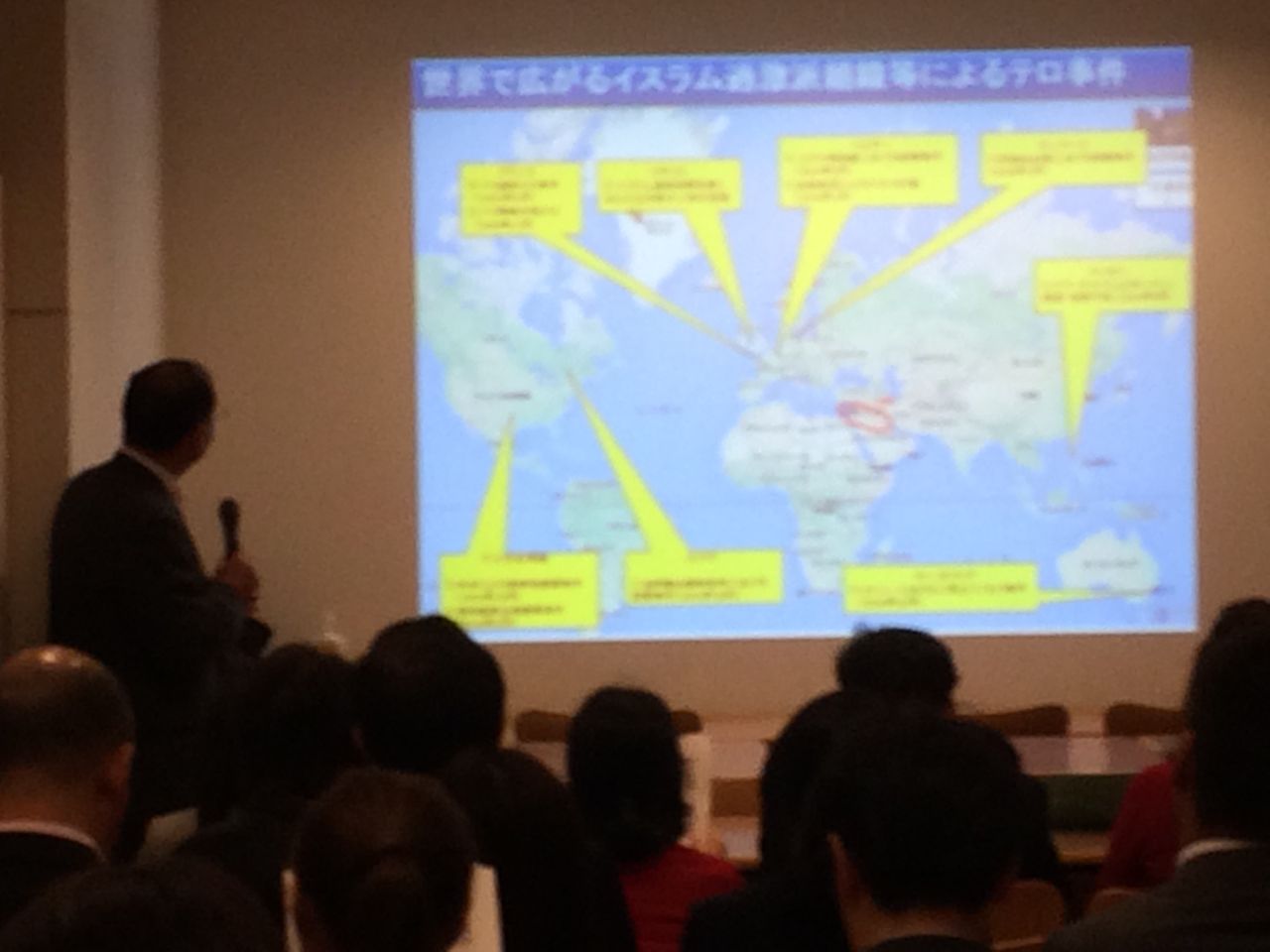 1部のセミナ-では、外務省領事局海外邦人安全課邦人援護官糸井清様に海外情勢、海外に行くときの注意事項についてお話しを頂きました。有難うございました。