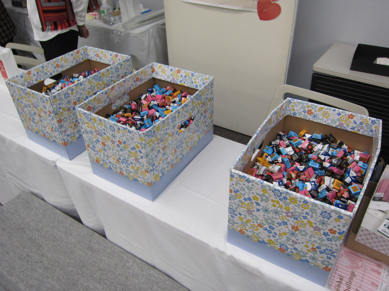 また、バレンタインデーとのこともあり、チョコレートチャレンジコーナにて、ミニチョコ詰め放題のイベントなども行われ、イベント後半には、外国人の皆様による異文化紹介とファッションショーなどもあり、会場内は大いに盛り上がっておりました。