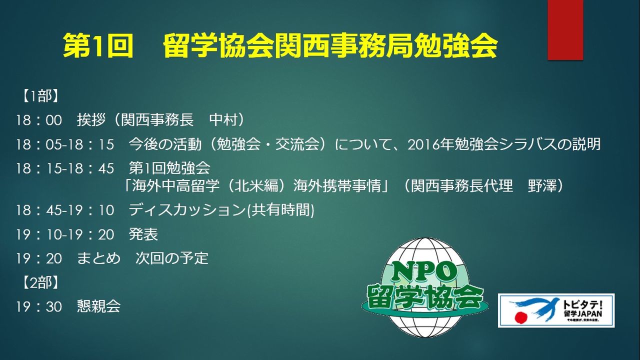2016年度は関西事務局として、≪横のつながり≫を合言葉に、下記のような内容で今後勉強会を年3-4回にわたり定期的に開催を予定しております。