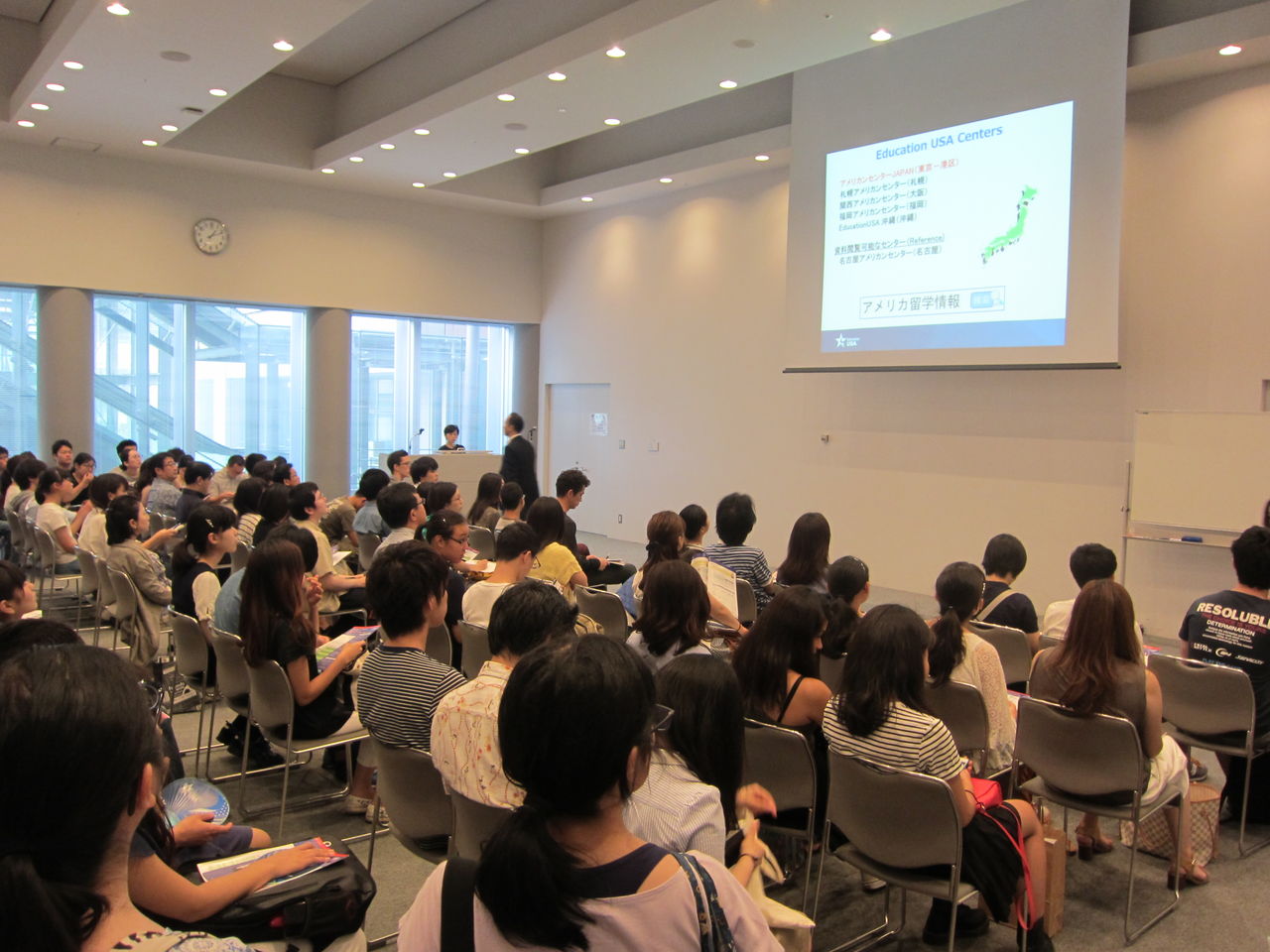 セミナーでは、東進ハイスクール英語講師の安河内哲也氏による、~留学に必要な英語力について「英語なんてやればできる!」~の講演からはじまり、各国の留学情報セミナーや「トビタテ!留学JAPAN」・「海外留学のための奨学金情報」などの説明があり、相談ブースでは、セミナーで聞くことのできなかった情報を求め、学生や親御様で途切れることなく、多くの方が個別相談や情報収集等をされておりました。