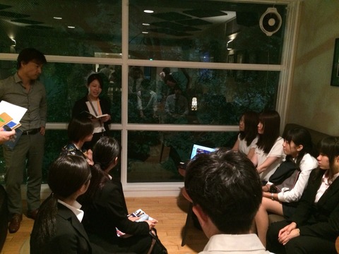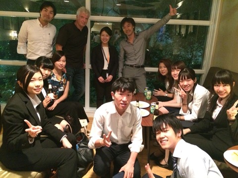 プレゼン後、オ-ストラリア大使館様のご厚意でドリンクやスナックをごちそうになりました。ご指導を頂きながら、参加者みんなで懇親を行うことができました。少しだけ外国の雰囲気を体験させて頂き、学生の皆さんと一緒に楽しいひと時を過ごすことが出来ました。
