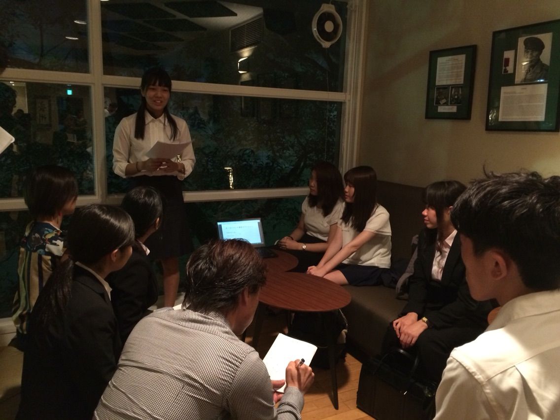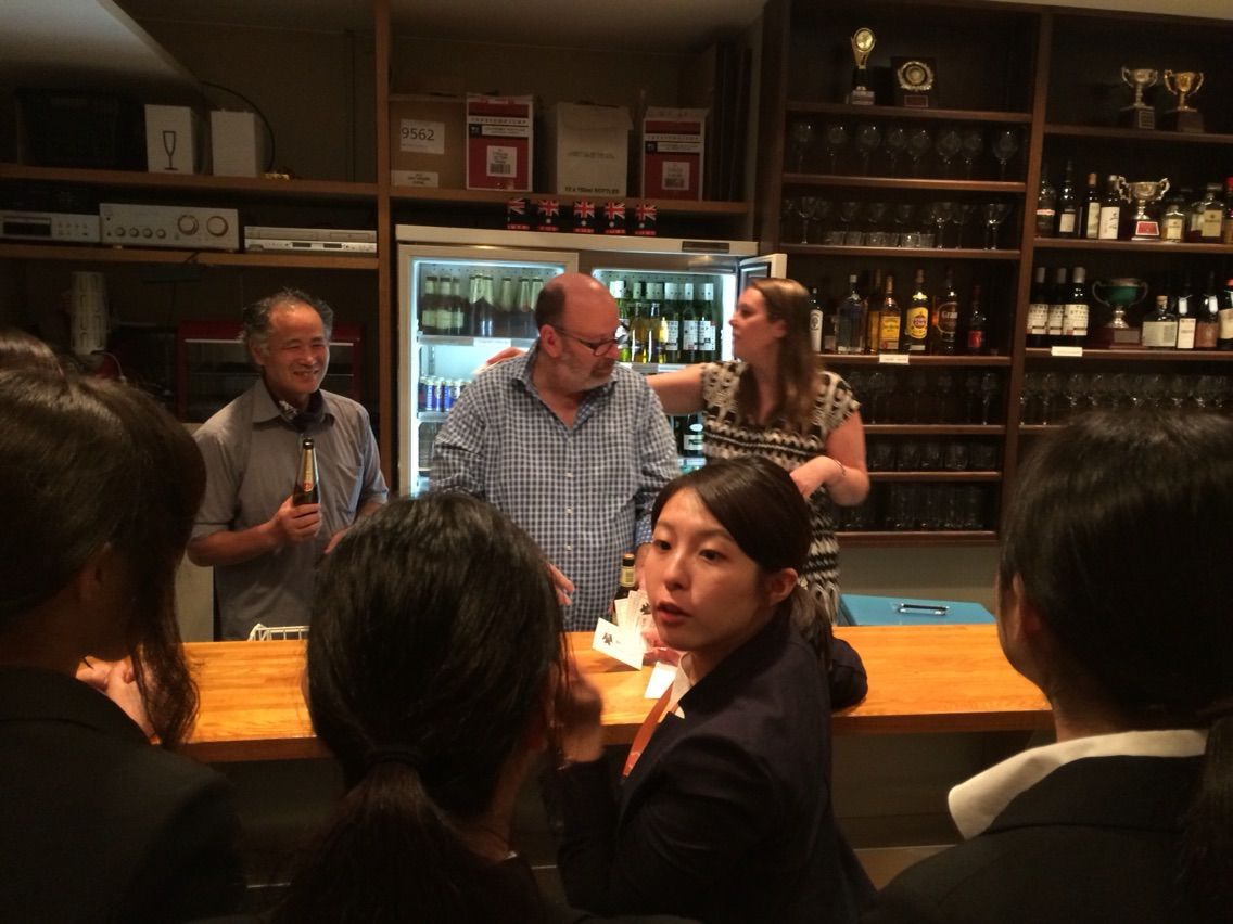 プレゼン後、オ-ストラリア大使館様のご厚意でドリンクやスナックをごちそうになりました。ご指導を頂きながら、参加者みんなで懇親を行うことができました。少しだけ外国の雰囲気を体験させて頂き、学生の皆さんと一緒に楽しいひと時を過ごすことが出来ました。