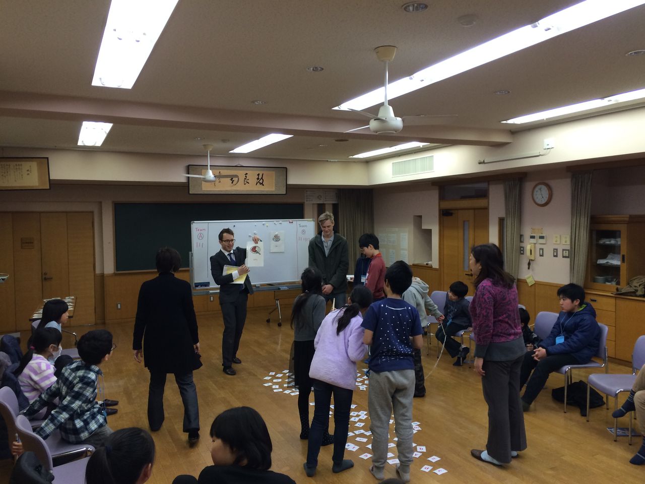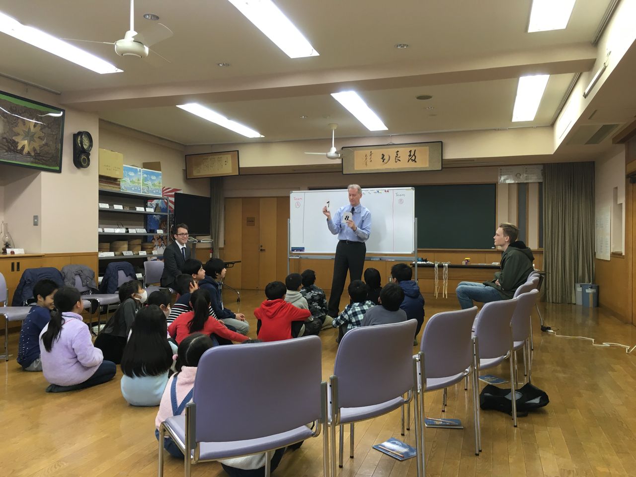 「外国人留学生と青少年との異文化交流会・料理おかし教室」の実施に先駆けて市谷小学校、愛日小学校、津久戸小学校、牛込第一中学校、牛込第三中学校をはじめ、新宿区教育委員会、箪笥地区スポーツ文化協議会、諸先生方のご協力を賜り「東京オリンピック・パラリンピックに向けての子供たちへのグローバル人材育成英語事業」を無事3回(2月8日、2月15日、3月1日)終了することが出来ました。